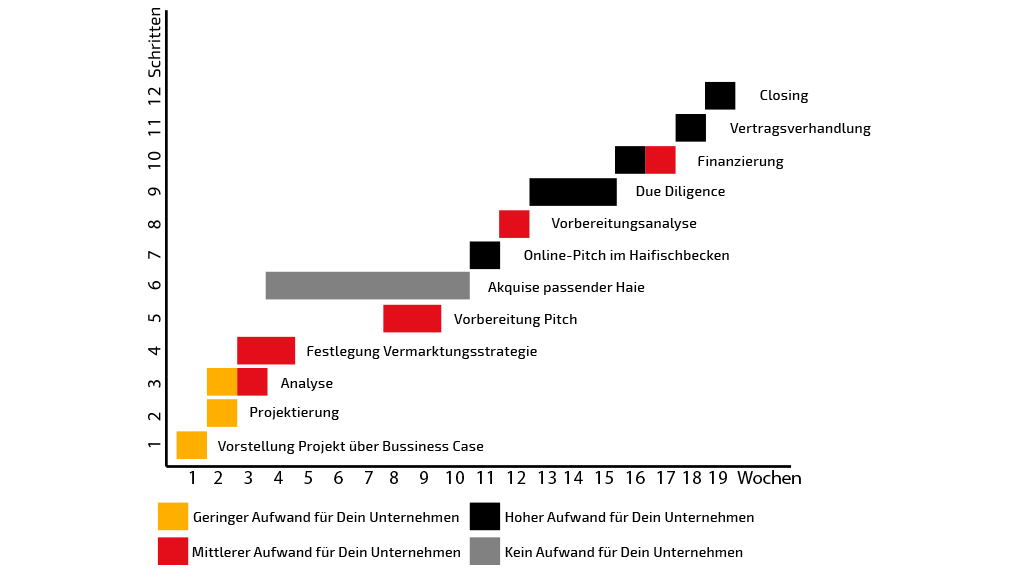 Aus diesem Grund haben wir unsere jahrelange Erfahrung auf diesem Gebiet in Form eines detaillierten, modularen Ablaufplan eingebracht und modulare Prozessschritte entwickelt, die es uns ermöglichen, für jedes Unternehmen das Optimum herauszuholen und jeden einzelnen Transaktionsschritt erfolgreich durchzuführen: